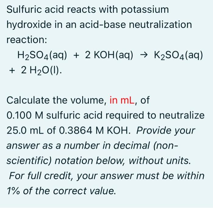Solved Sulfuric Acid Reacts With Potassium Hydroxide In An Chegg Com